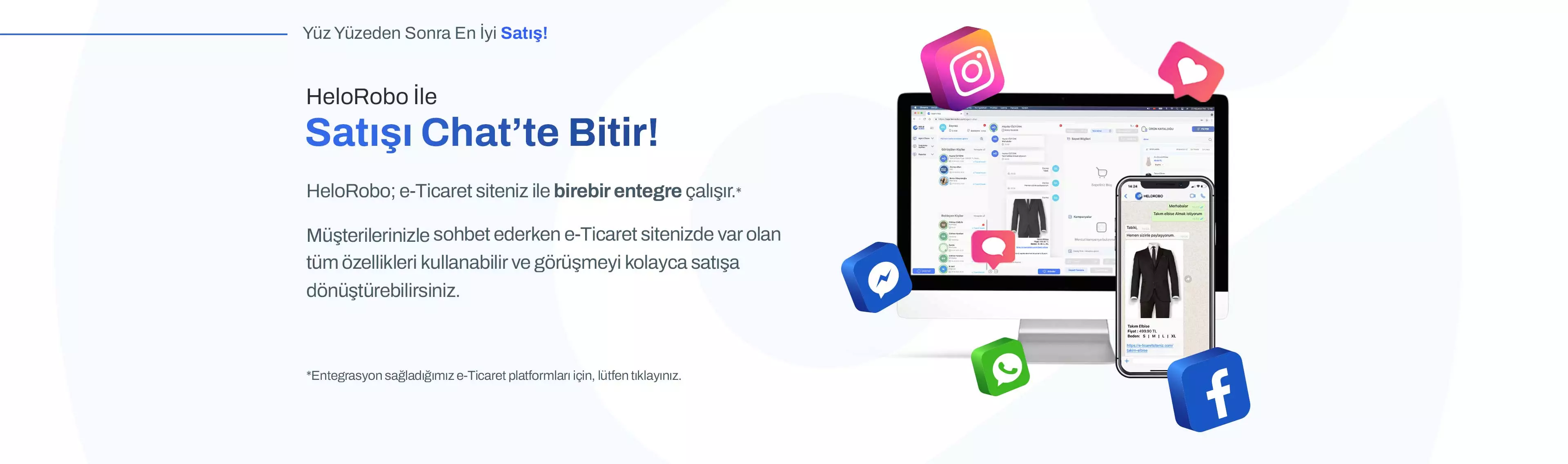 HeloRobo, WhatsApp ve Facebook Messenger üzerinden müşterilerinizle sohbet etmenizi, ürünlerinizi tanıtmanızı ve bu ürünleri hızlı bir şekilde satışa dönüştürmenize olanak sağlıyor.