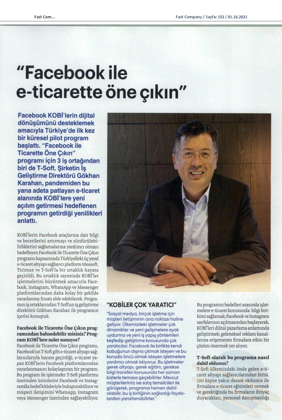 Facebook KOBİ'lerin dijital dönüşümünü desteklemek amacıyla Türkiye'de ilk kez bir küresel pilot prgoram başlattı. Facebook ile Ticarette öne çıkın programı için 3 iş ortağından biri de T-Soft. Şirketin iş geliştirme direktörü Gökhan Karahan pandemiden bu yana adeta patlayan e-ticaret alanında KOBİ'lere yeni açılım getirmesş hedeflenen programın getirdiği yenilikleri anlattı.